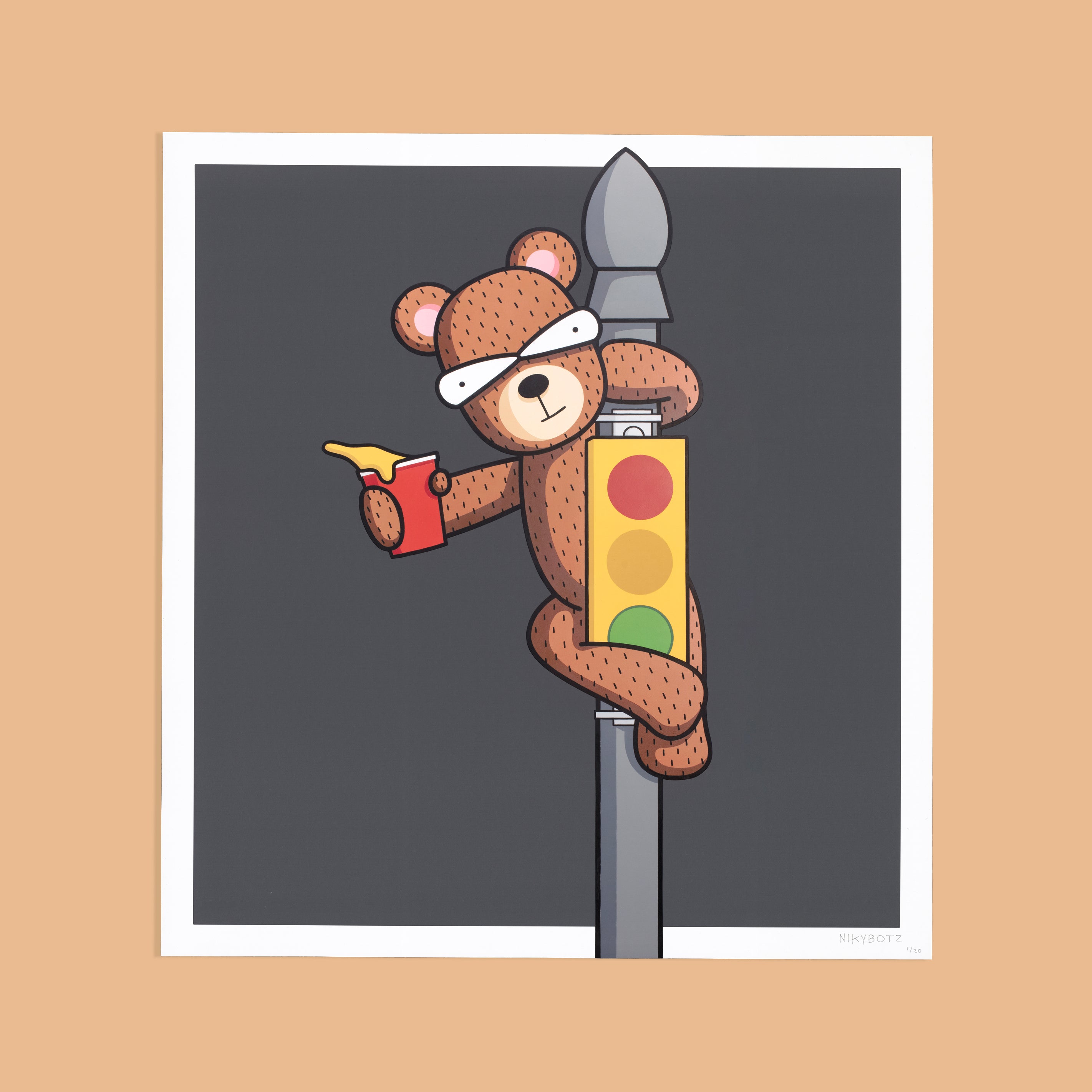 Step 1: Climb up at night to measure the width and height of the empty billboard space. Step 2: Go to the art store, buy two pieces of unstretched canvas, primer, paint pens and spray paint. Step 3: Take the two pieces of canvas to the tailor to have them sewn together. Step 4: Paint the piece. Step 5: Wake up early. Wear construction gear. Bring ladder, cable ties and artwork. Step 5: Make sure to get a photo! (Shoutout to my friend Kenny for being up there with me)